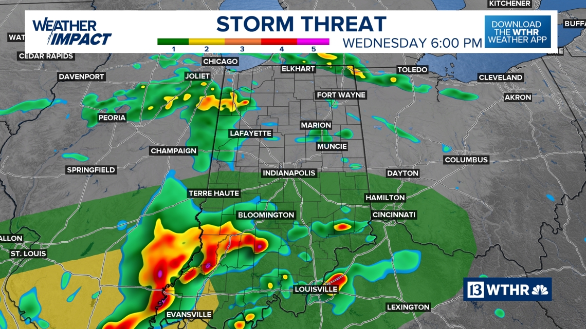 Storm coverage and intensity will increase through the afternoon, especially across the central and southern half of Indiana.